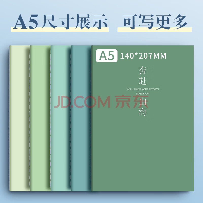 商品相册:法拉蒙【开学必备】5本装A5横线笔记本子简约初高中大学生考研软面抄本车线本记事本加厚缝线本 A5浅色款第