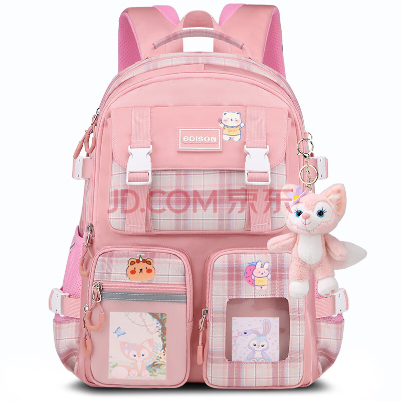 商品相册:爱迪生发明家初中生书包贝儿小学生大容量女生减负双肩背包 2260-1 粉色大号第