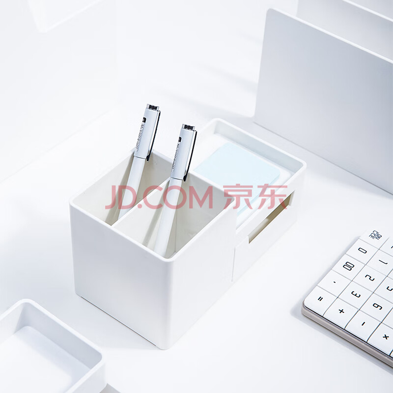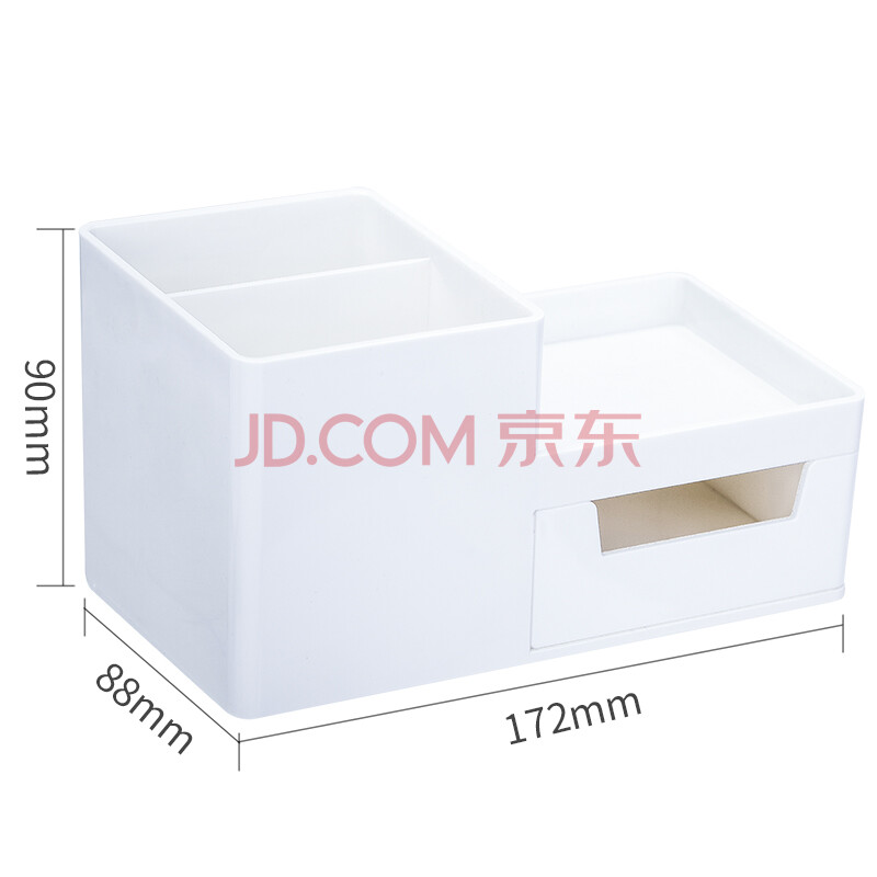商品相册:得力(deli)8907 学生办公桌面收纳盒 多功能带抽屉创意笔筒化妆盒多隔收纳桌面储物盒 白色 单个装第