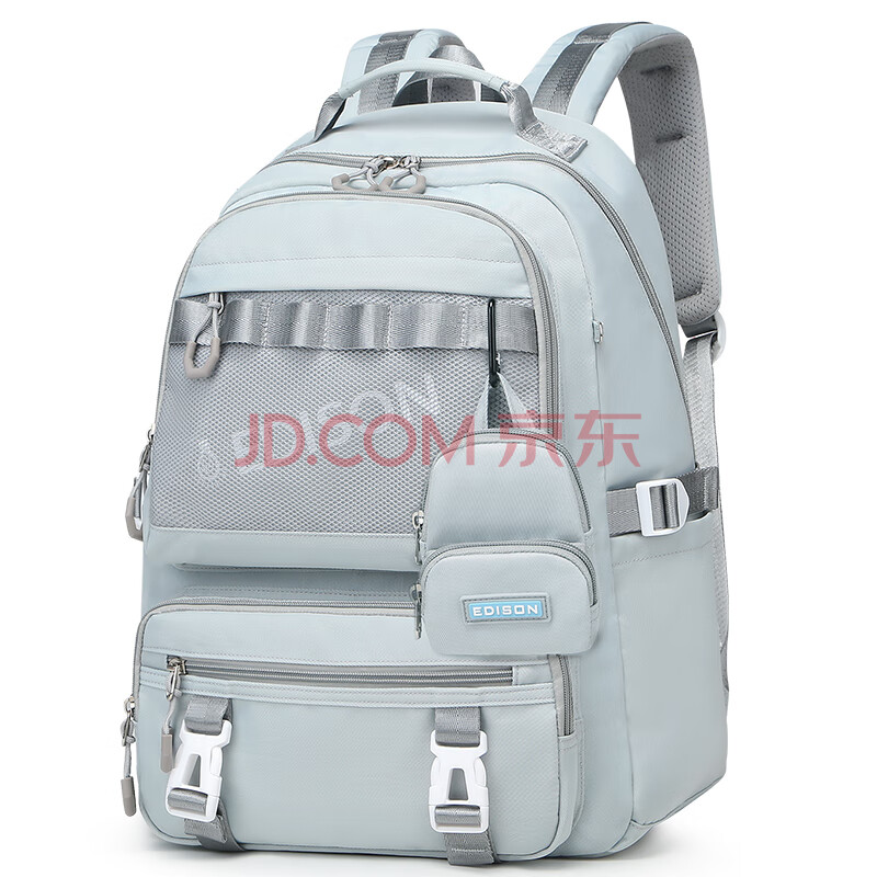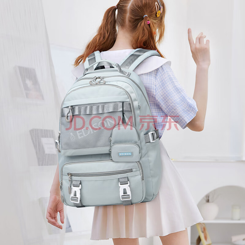商品相册:爱迪生发明家初中生书包大容量双肩包男女高中学生校园休闲背包 2270-2 浅灰兰第