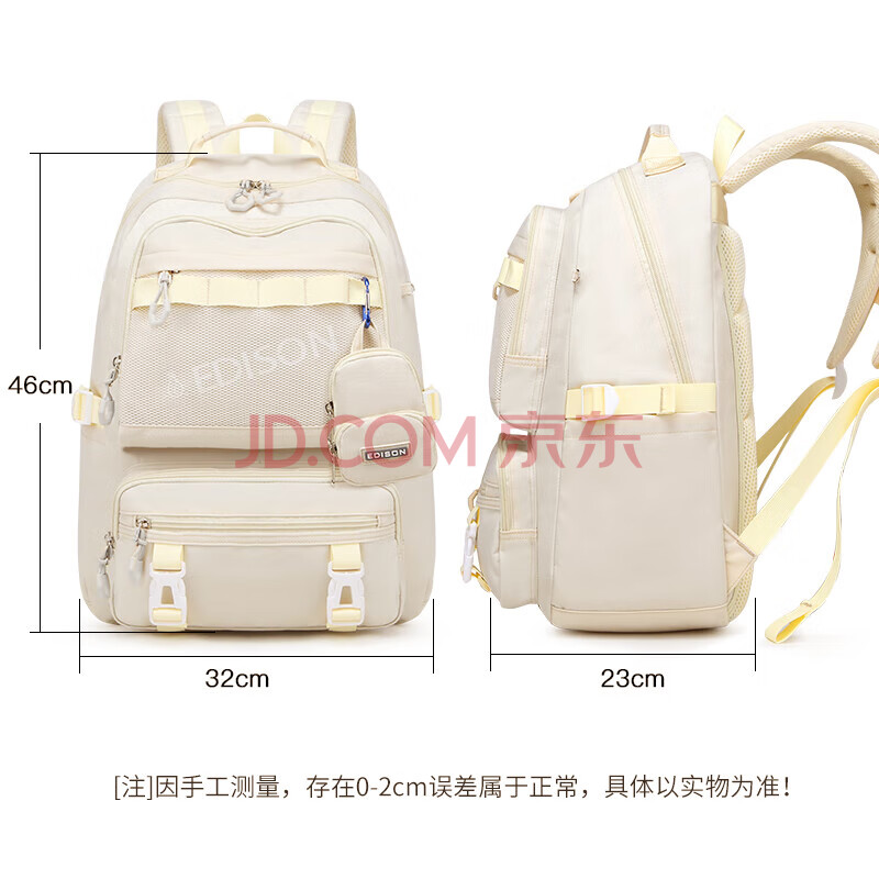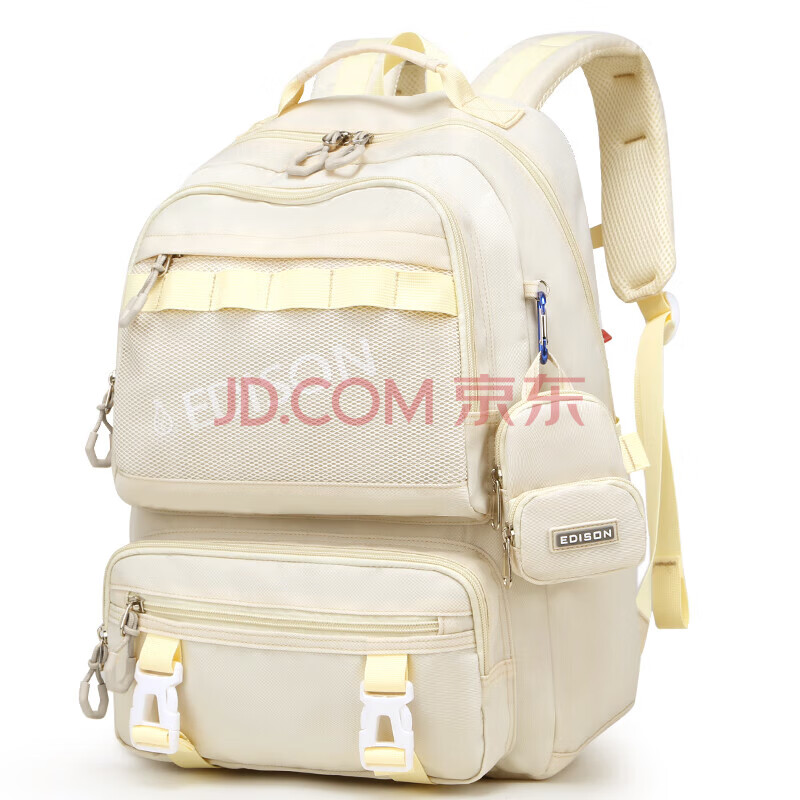 商品相册:爱迪生发明家初中生书包大容量双肩包女生高中学生校园休闲背包 2270-4 米白色第
