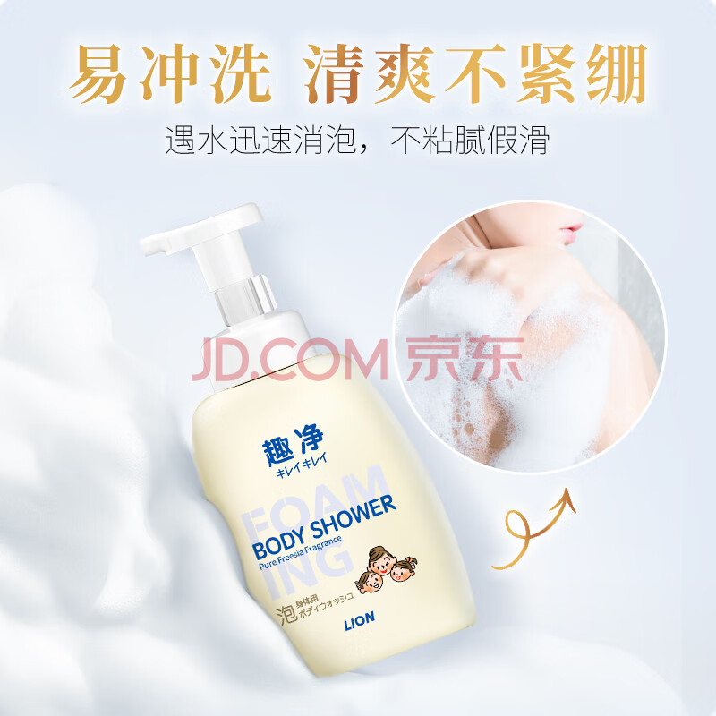 商品相册:狮王(Lion)趣净泡泡沐浴露小苍兰香440ml绵密家庭装温和滋润儿童敏肌可用第