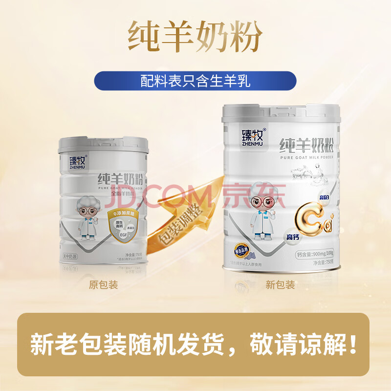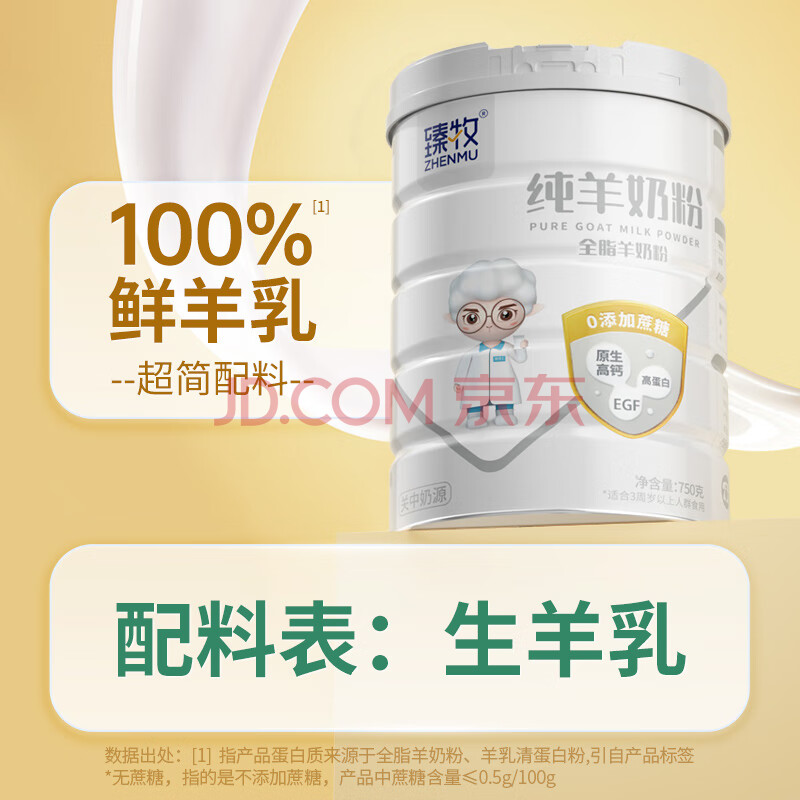 商品相册:臻牧(zhenmu)纯羊奶粉无蔗糖儿童青少年孕妇中老年全脂纯羊奶粉750g*2礼袋装第