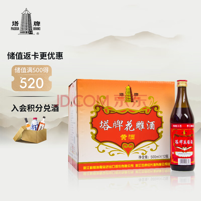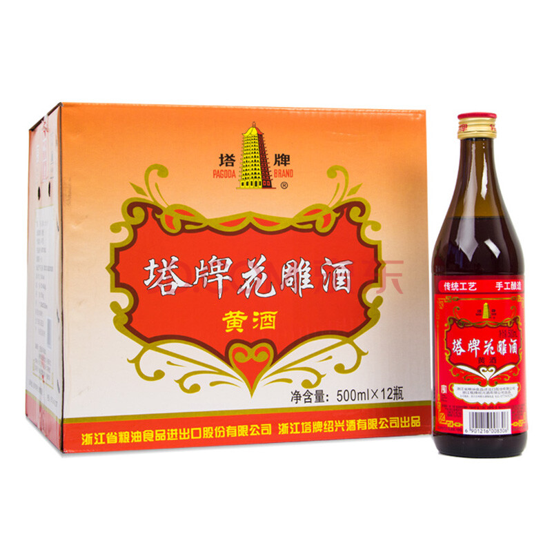 商品相册:塔牌 陈年花雕酒 半干型 绍兴黄酒 500ml*12瓶 整箱装 加饭酒第