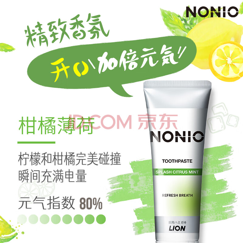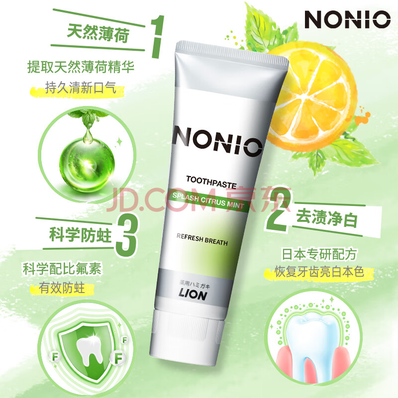 商品相册:狮王(lion)NONIO进口清新牙膏柑橘薄荷130g亮白护龈含氟金榜推荐第