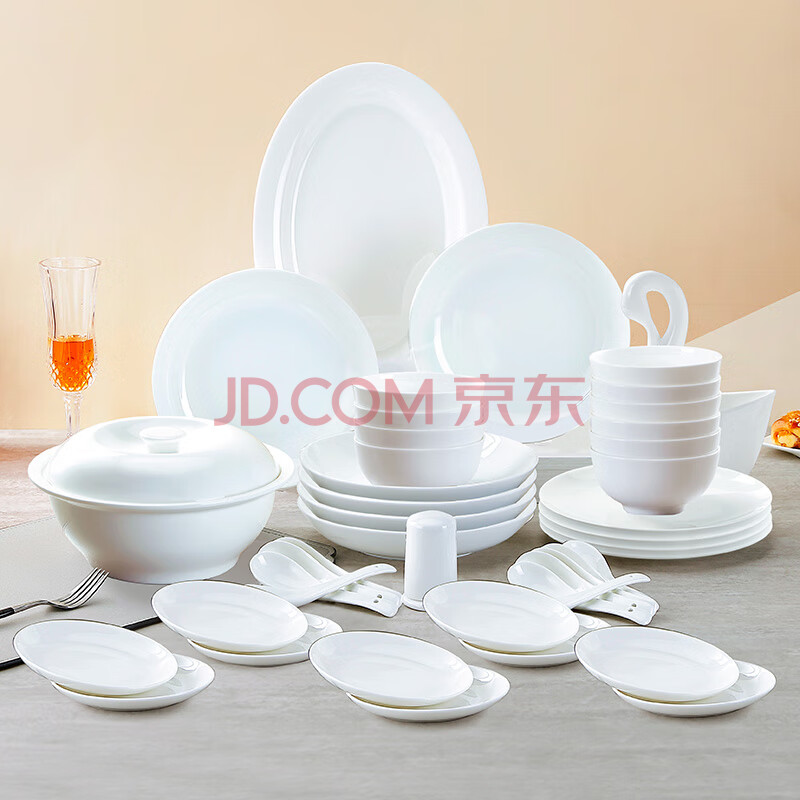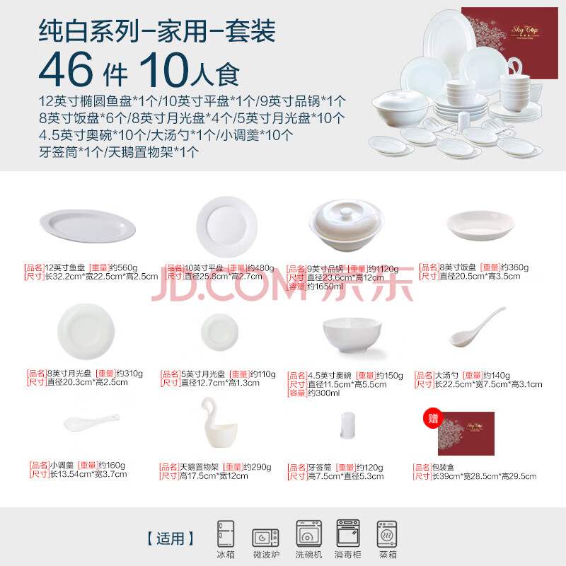 商品相册:斯凯绨(Sky Top)碗盘碟筷餐具套装纯白陶瓷简约骨瓷家用乔迁礼盒十人份46头第