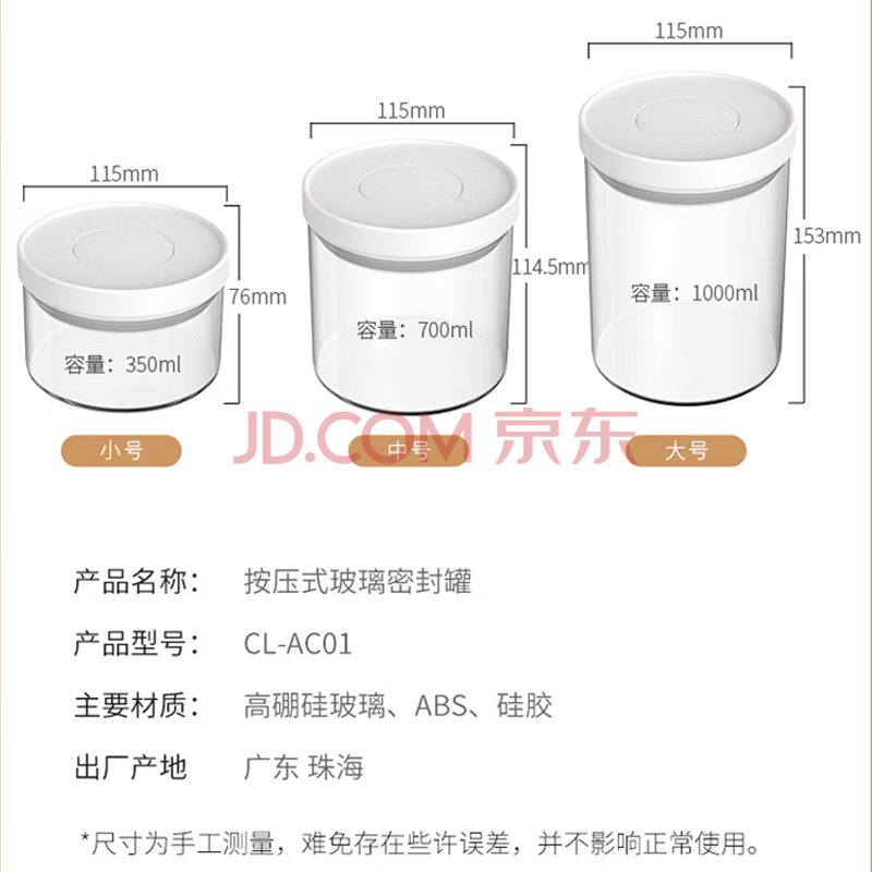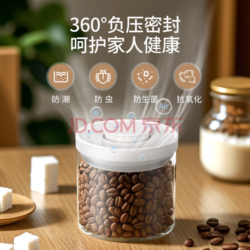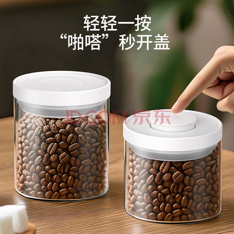 商品相册:CLITON玻璃密封罐按压式咖啡豆存储罐 冰箱储物杂粮茶叶干货保鲜罐700ml第