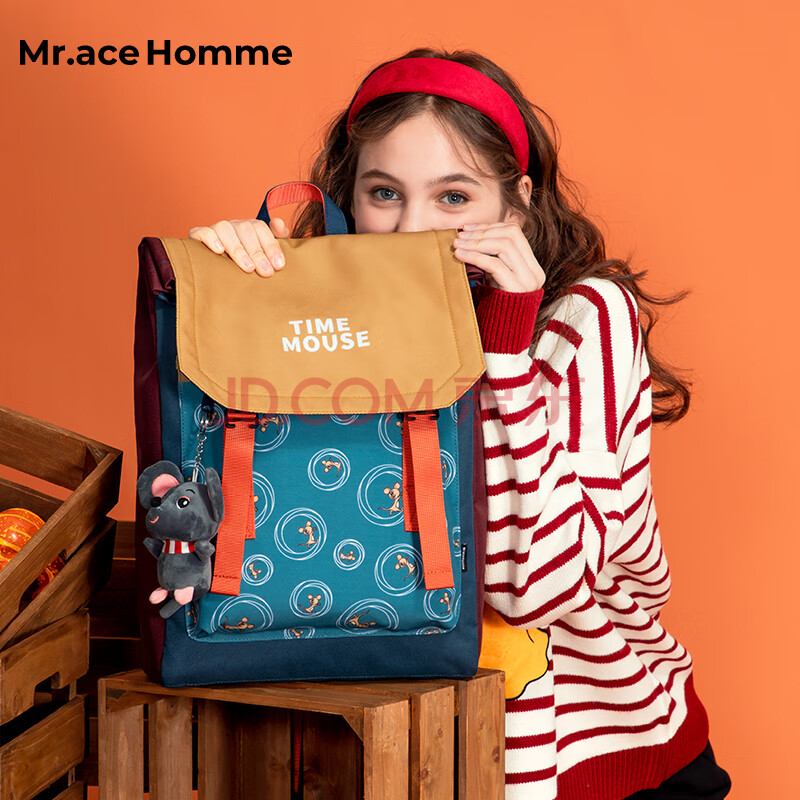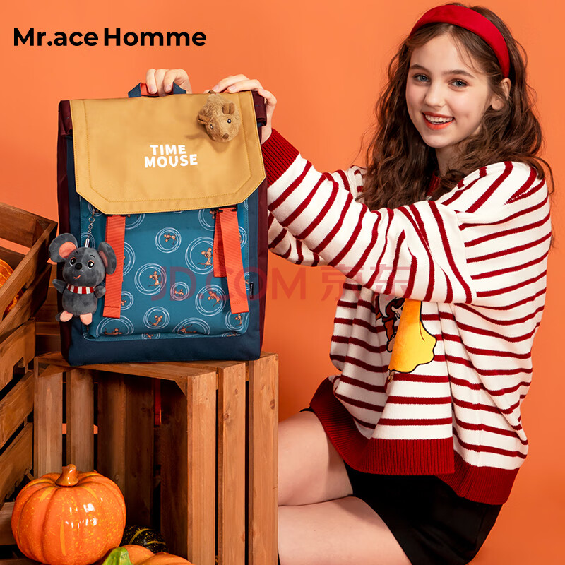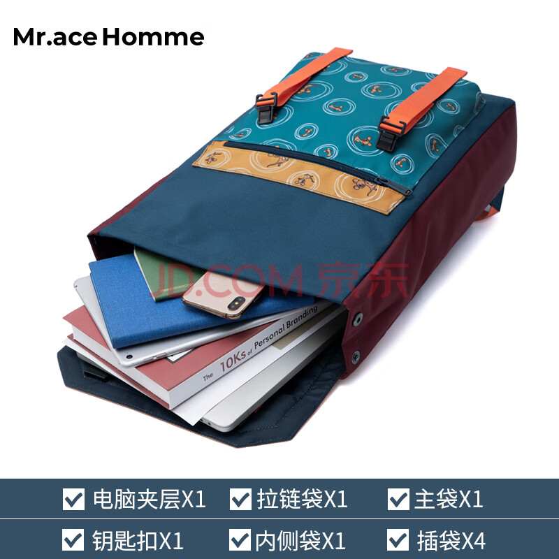 商品相册:Mr.ace Homme韩版时尚学生书包女15英寸大容量电脑包男百搭双肩包 黛蓝色第