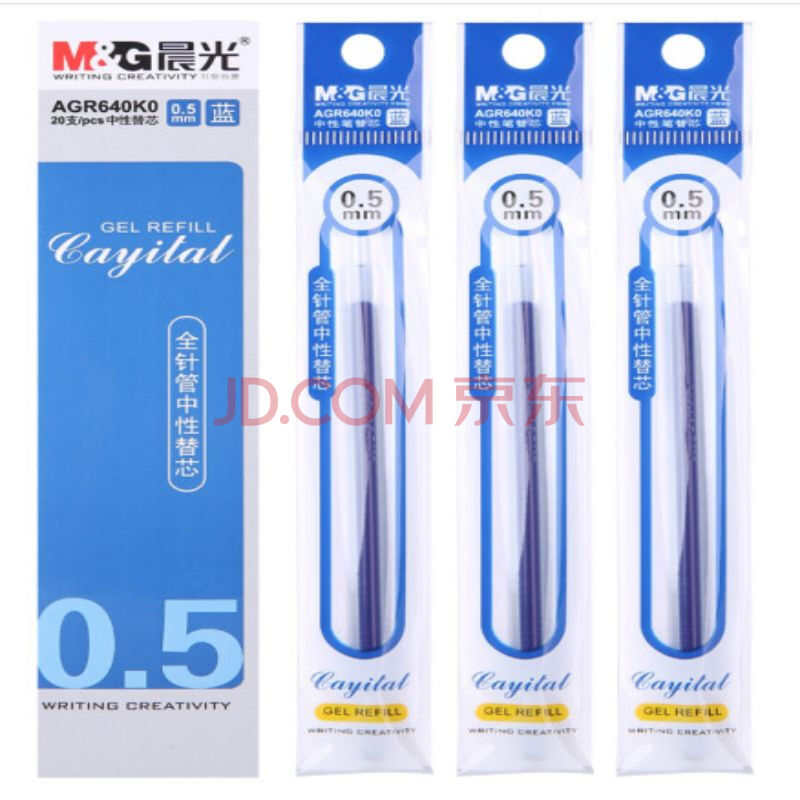 商品相册:晨光(M&G)文具0.5mmAGR640K0蓝色中性笔芯 全针管签字笔替芯 学生/办公通用水笔芯 20支/盒 20支装第