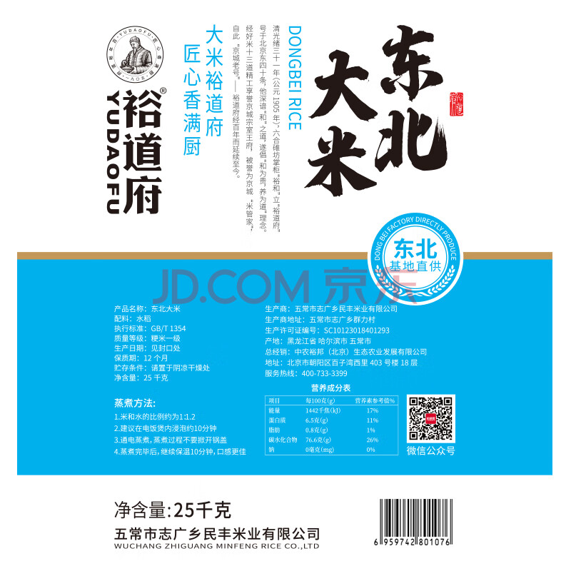 商品相册:裕道府珍珠米 大米 50斤装 东北圆粒粳米25kg家庭装 当季新米第