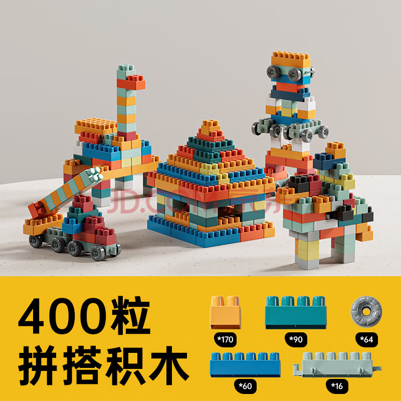 商品相册:铭塔400粒儿童拼插塑料积木玩具3-6岁动脑拼装男孩女孩生日礼物第