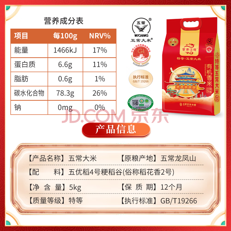 商品相册:京贡1号特等五常大米 有机大米10斤 原粮稻花香2号 25新米 东北大米第