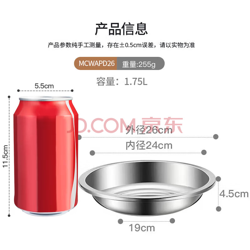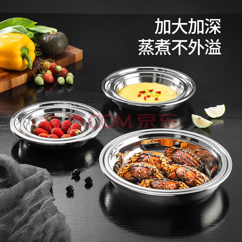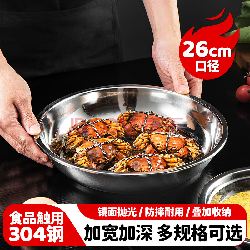 商品相册:美厨(maxcook)加厚304不锈钢盘碟 盆碟26CM 加宽加深 耐摔 MCWAPD26第