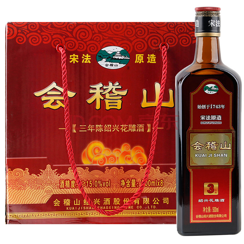 商品相册:会稽山纯正绍兴黄酒宋法清醇三年陈酿花雕酒500ML*8瓶礼盒整箱装第