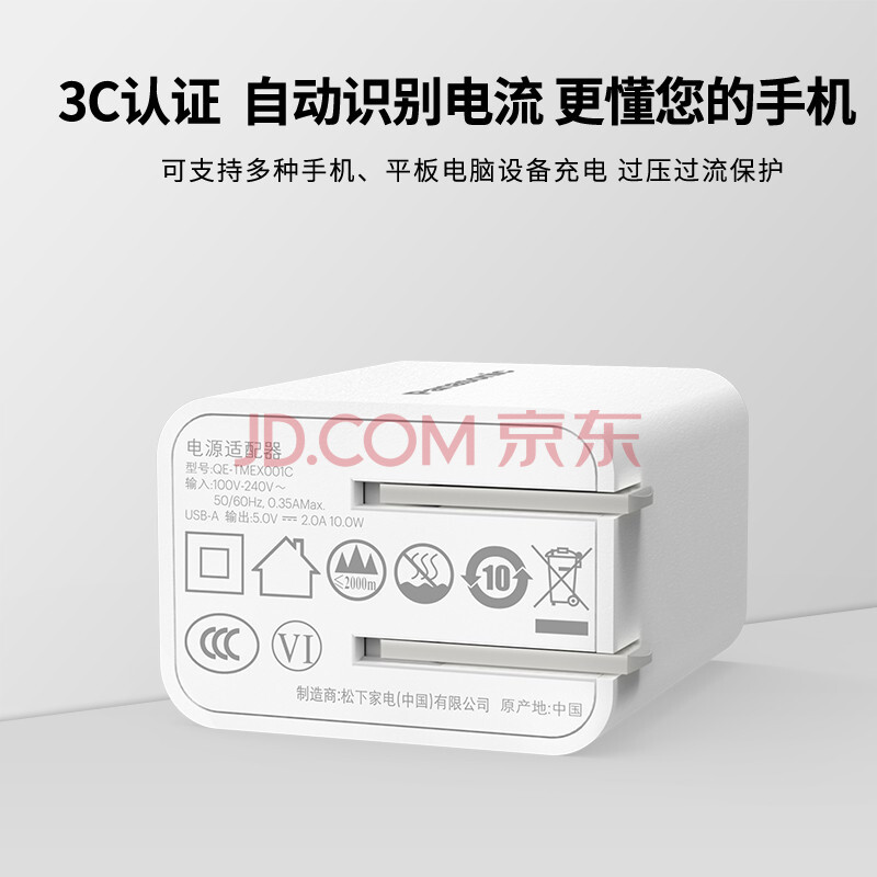 商品相册:松下(Panasonic)5V2A充电头适用于苹果iphone6/7/8/Xplus华为安卓手机平板通用USB插头充电器第