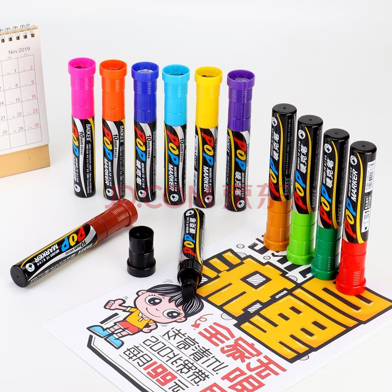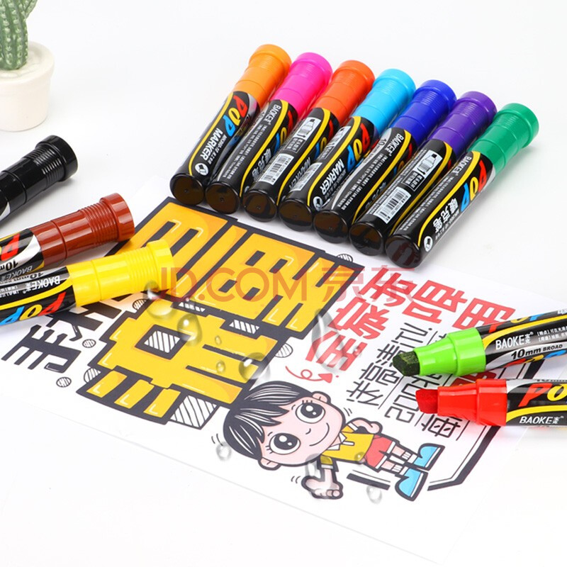 商品相册:宝克(BAOKE)MK860-10 12色POP唛克笔套装 海报广告画笔 彩色马克笔记号笔 10mm第