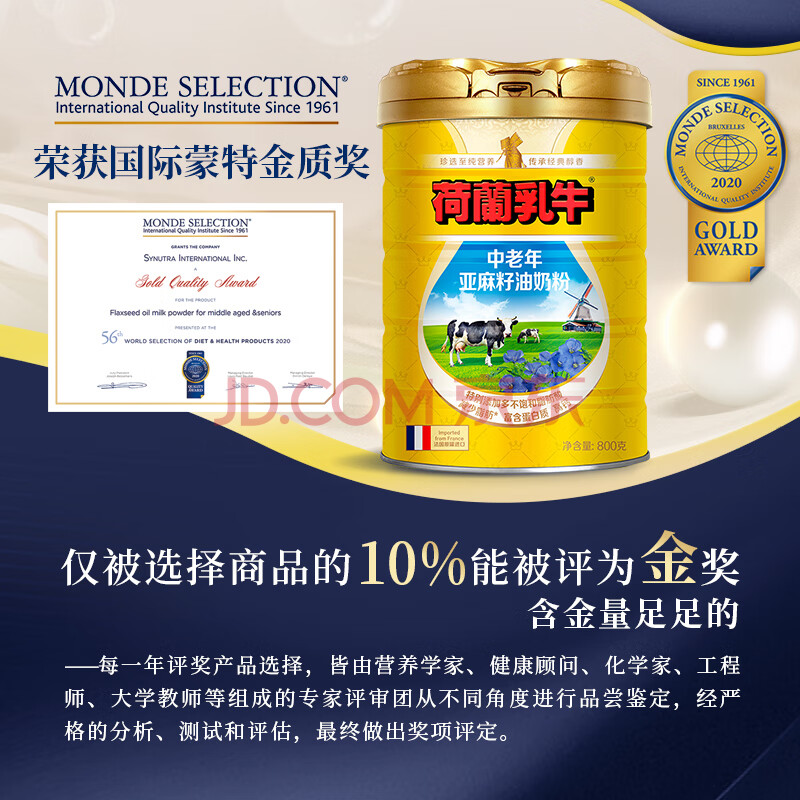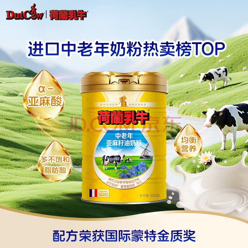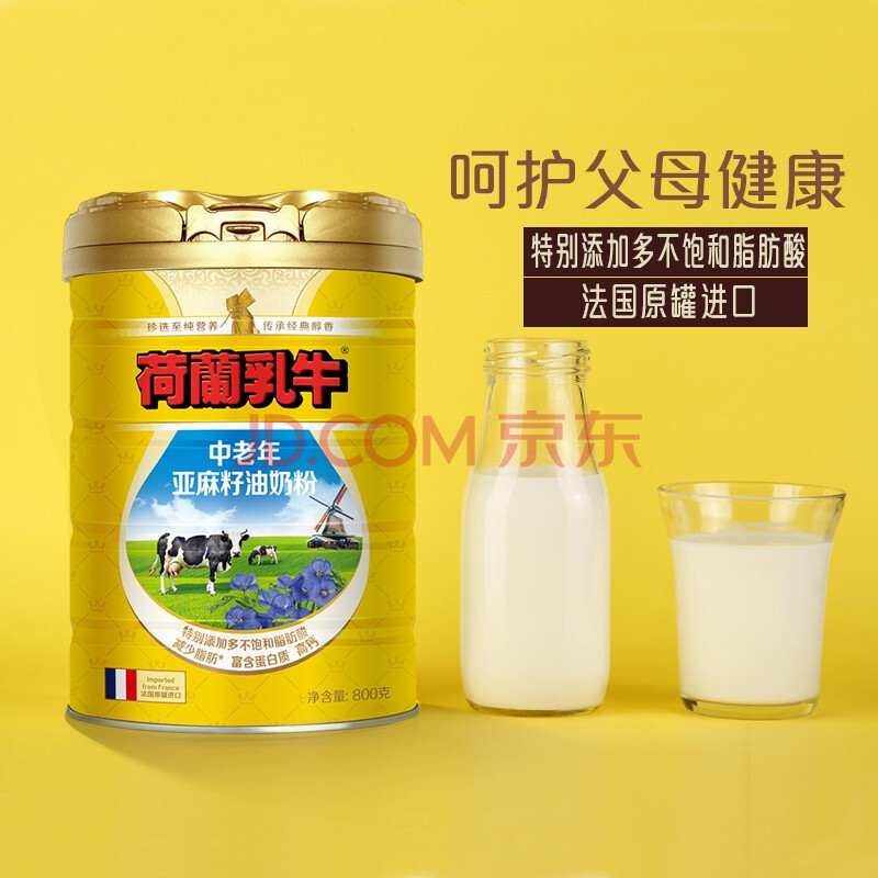 商品相册:荷兰乳牛法国进口中老年亚麻籽油配方奶粉800g罐 高钙高蛋白添加α-亚麻酸第