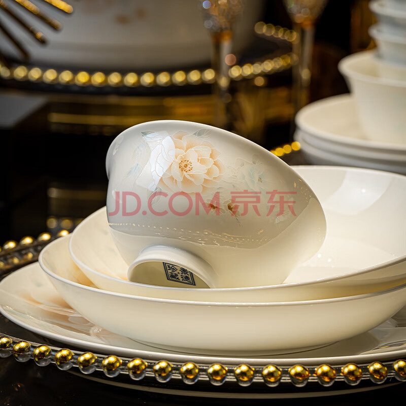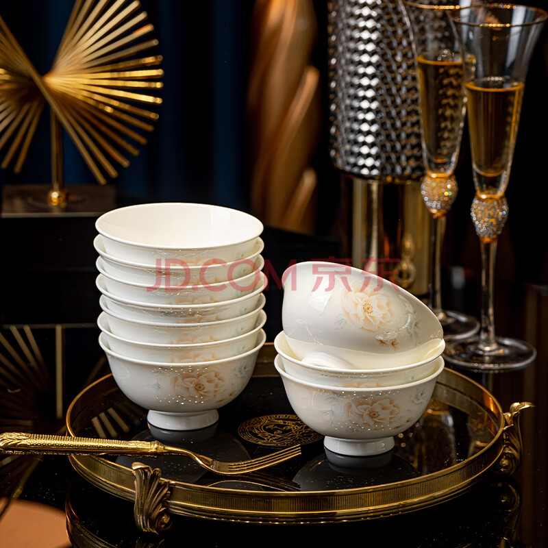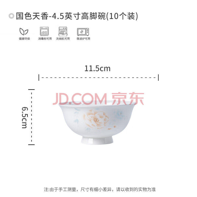 商品相册:浩雅景德镇陶瓷碗具套装陶瓷米饭碗汤碗用国色天香4.5英寸高脚碗10个第