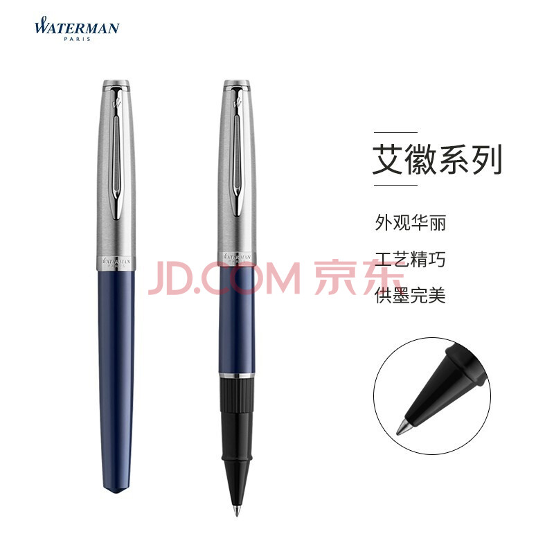 商品相册:威迪文(WATERMAN)艾徽系列 海洋蓝白夹签字笔/宝珠笔第
