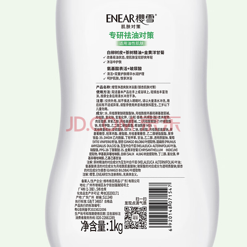 商品相册:樱雪(ENEAR)保湿沐浴露 氨基酸玻尿酸净透爽肤沐浴乳持久留香 1kg第
