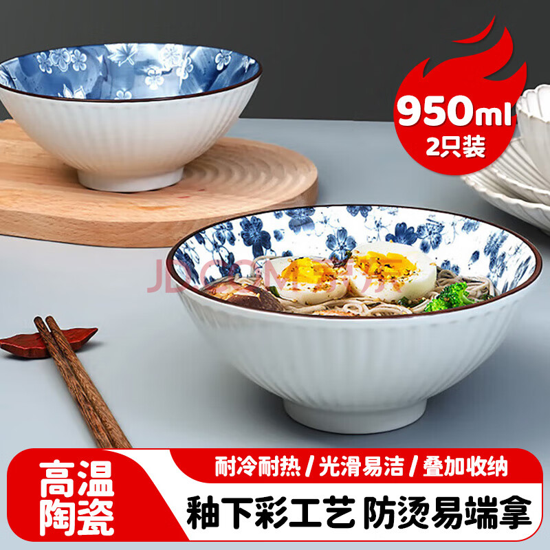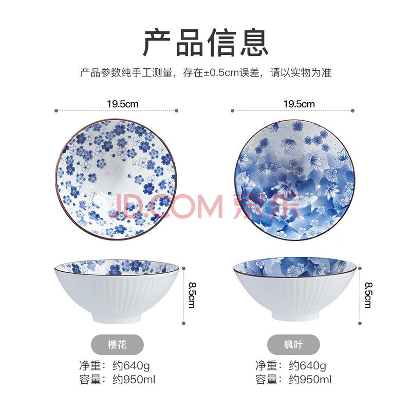 商品相册:美厨(maxcook)陶瓷碗日式碗 8英寸陶瓷碗家用汤碗面碗饭碗套装 2只装MCTC9397第