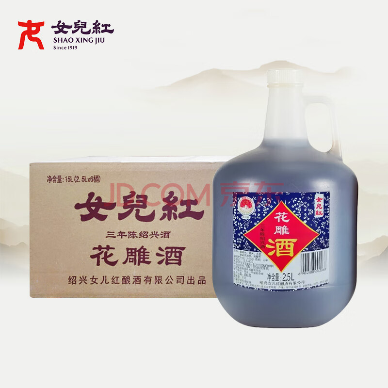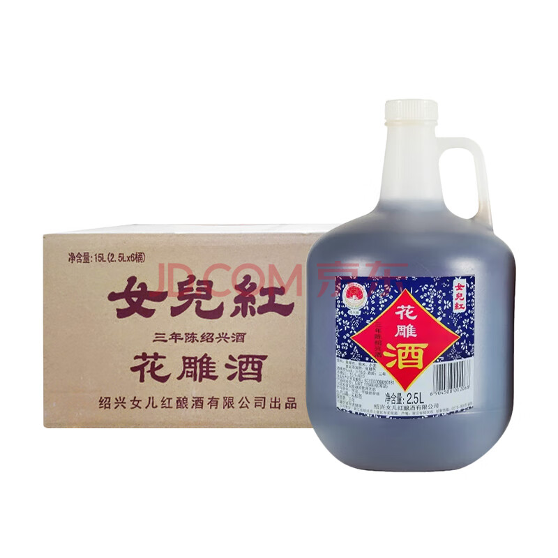 商品相册:女兒红花雕酒三年 半干型 绍兴黄酒 2.5L*6桶 整箱装 可作料酒第