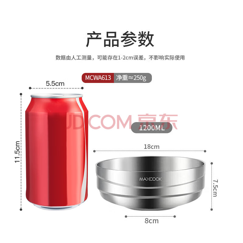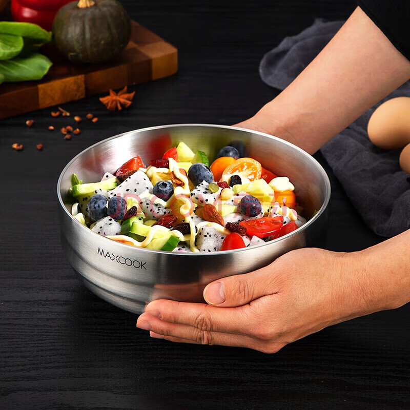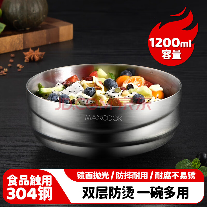 商品相册:美厨(maxcook)304不锈钢碗 大汤碗双层隔热 餐具面碗18CM MCWA613第