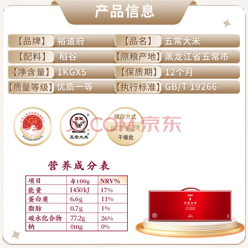 商品相册:裕道府五常大米礼盒10斤 东北大米5kg 当季新米 红色礼盒 自营第