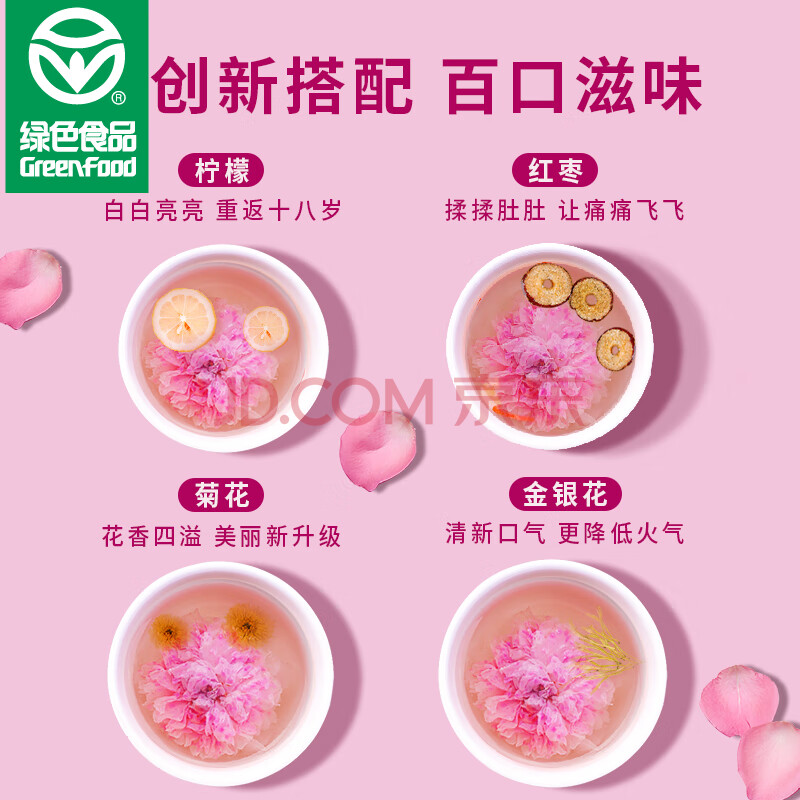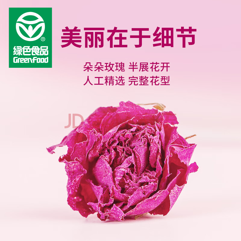 商品相册:贡苑【绿色食品】玫瑰花茶 特大朵花冠级平阴无硫重瓣干玫瑰花泡水35g第