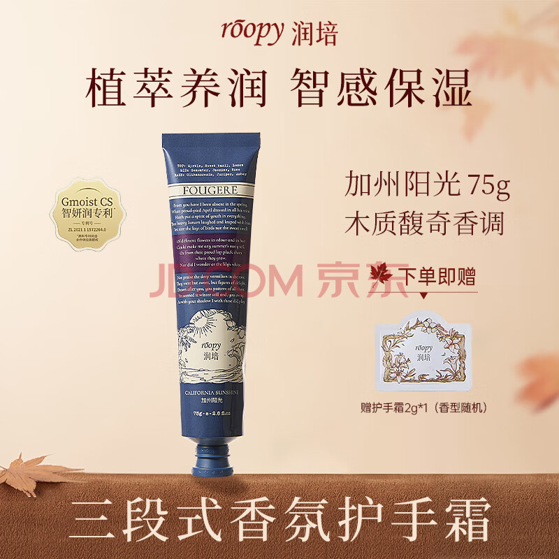 商品相册:润培香氛植萃护手霜滋润保湿补水防干裂男女生日礼物送礼 加州阳光75g第