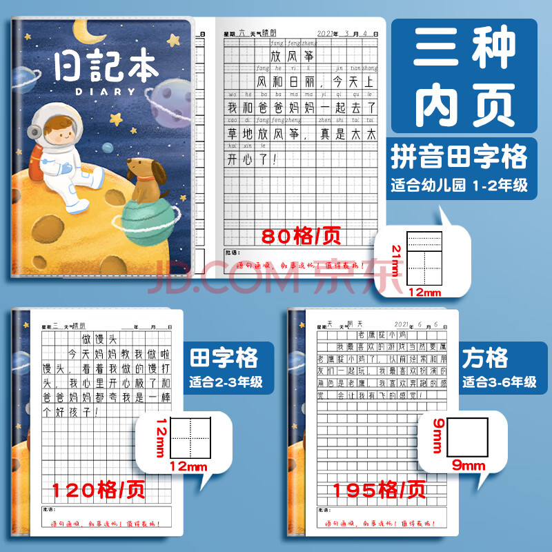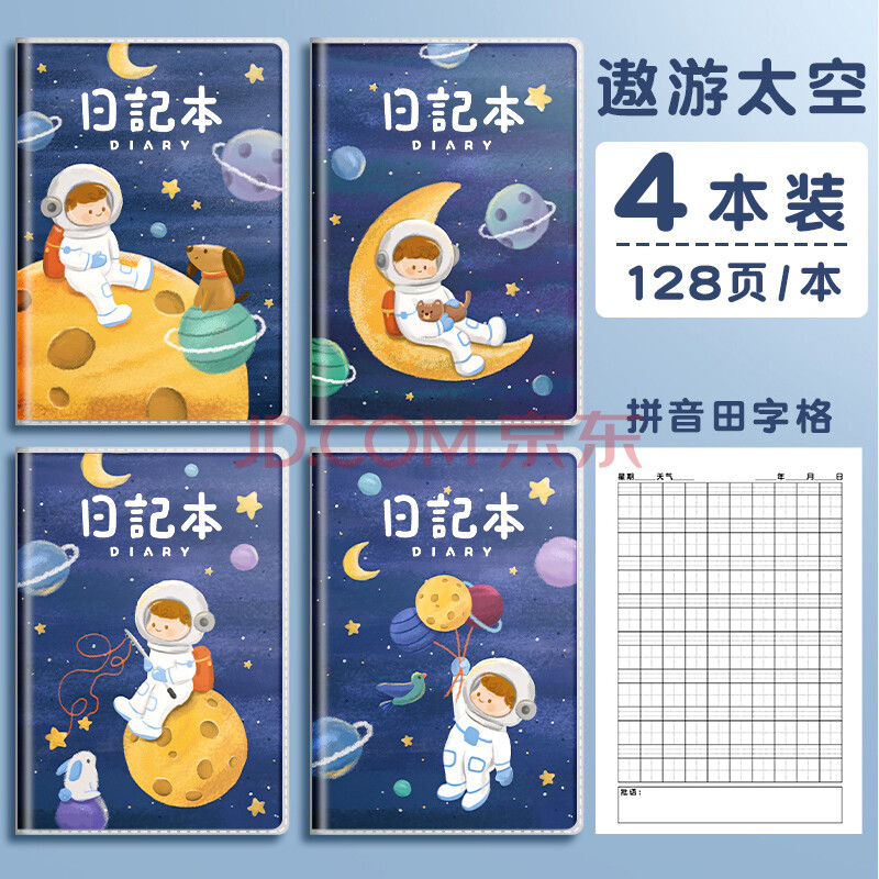 商品相册:金值4本小学生胶套日记本拼音田字格 儿童笔记本作文本一年级二年级三年级写周记小学语文本 第