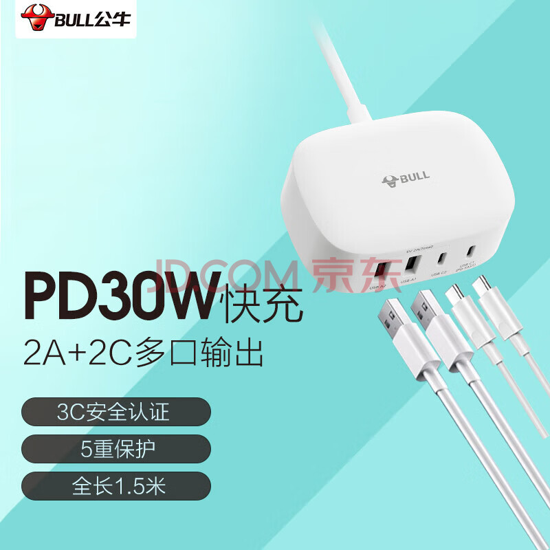 商品相册:公牛30WPD快充充电盒子 兼容PD20W苹果手机充电器多口充电头 适用苹果安卓手机平板USB电源适配器第