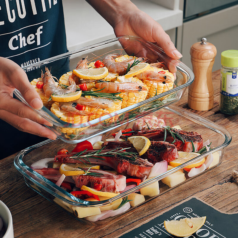 商品相册:格娜斯长方形耐热玻璃烤盘烤箱用微波炉专用鱼盘餐盘菜盘1L第
