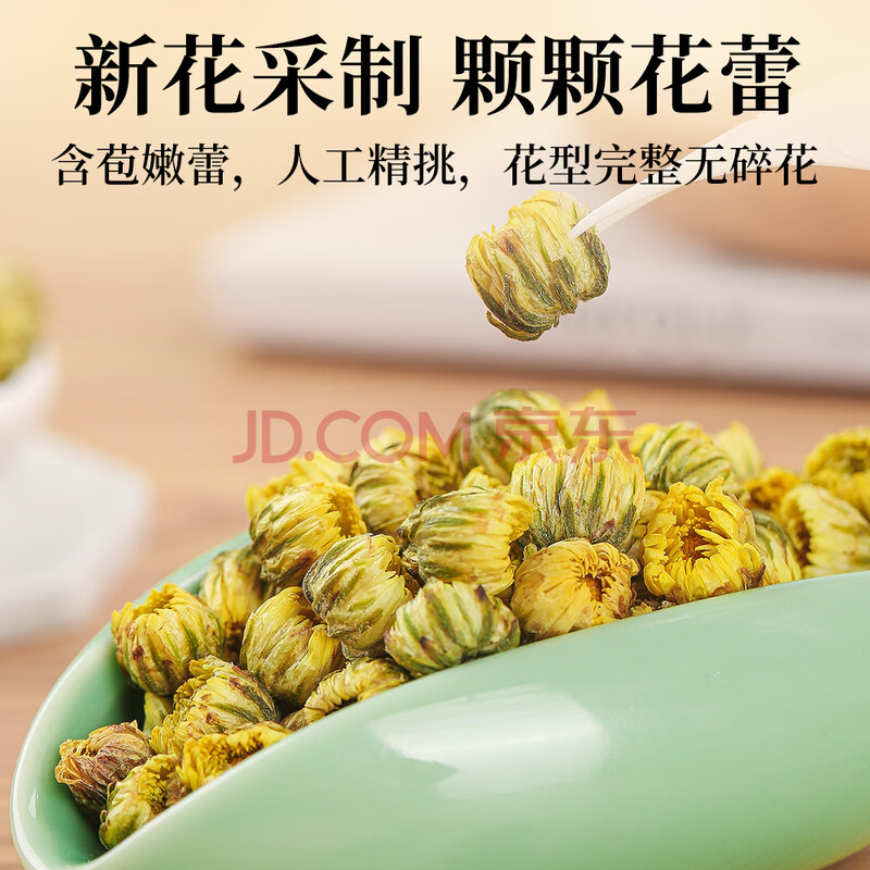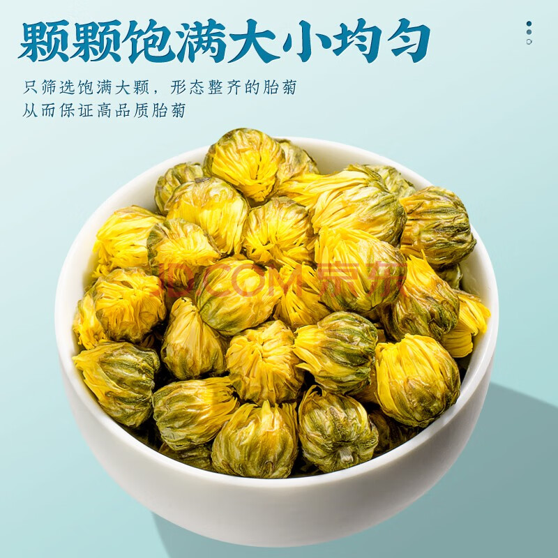 商品相册:福茗源花草茶 桐乡胎菊花 菊花茶 优选特级品质白菊花蕾花茶叶袋装250g第