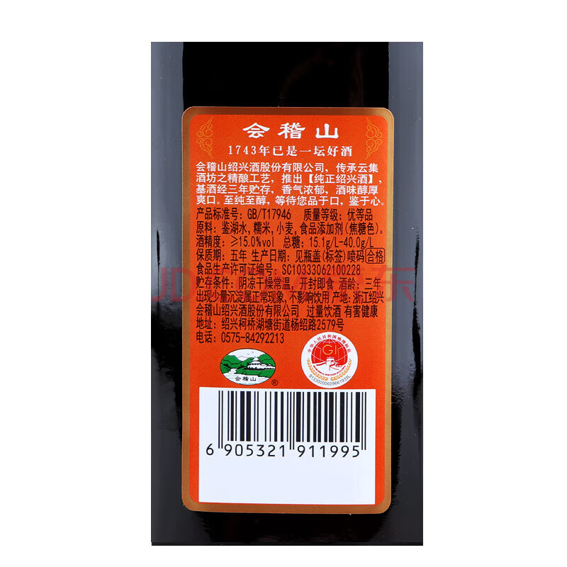 商品相册:会稽山 纯正三年 半干型 绍兴黄酒 500ml*12瓶 整箱装 花雕酒 第