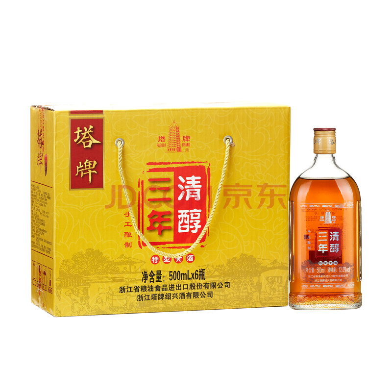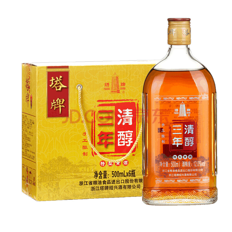 商品相册:塔牌 清醇三年 半干型 绍兴黄酒 500ml*6瓶 整箱装第
