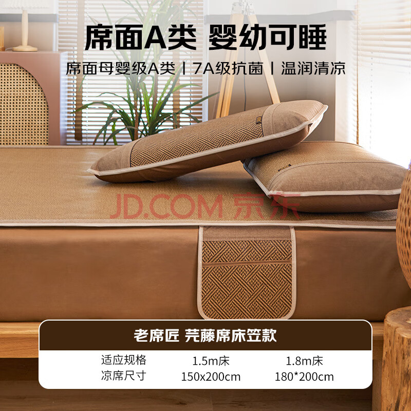 商品相册:老席匠芫藤床笠藤席凉席双人三件套150*200【可折叠】第