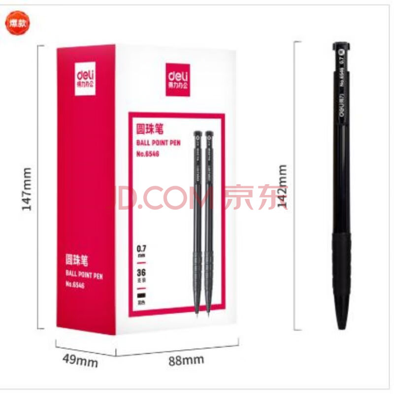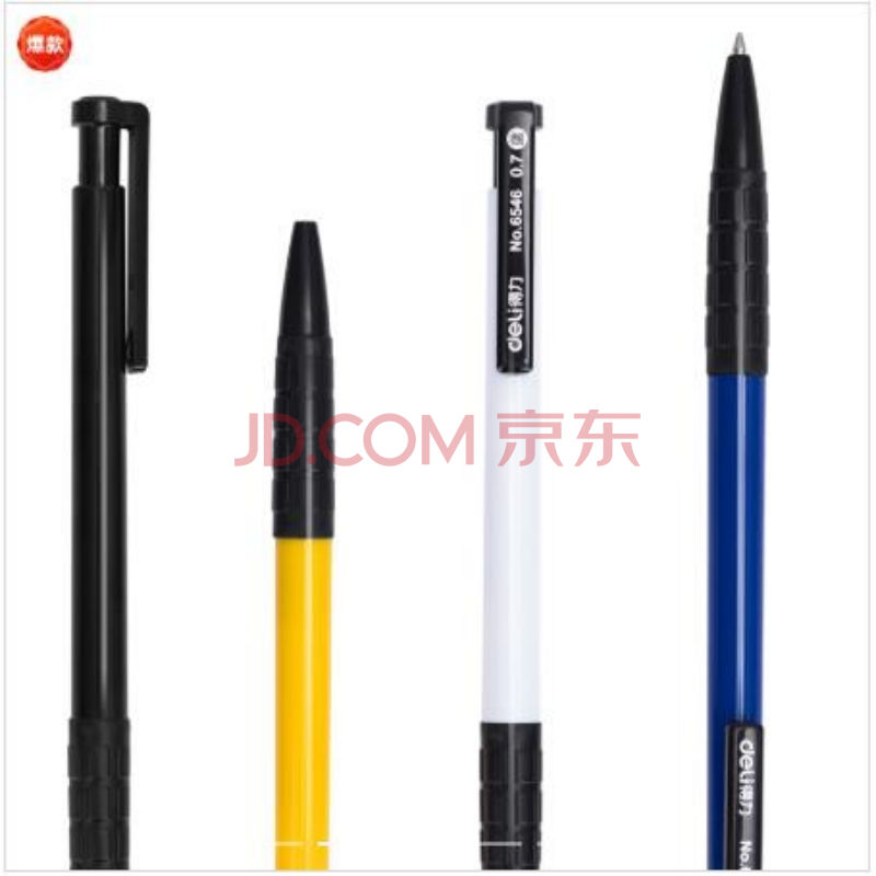商品相册:得力(deli)6546圆珠笔中油笔 0.7mm子弹头软胶握手原子笔按动笔 办公用品 蓝色 36支/盒 第