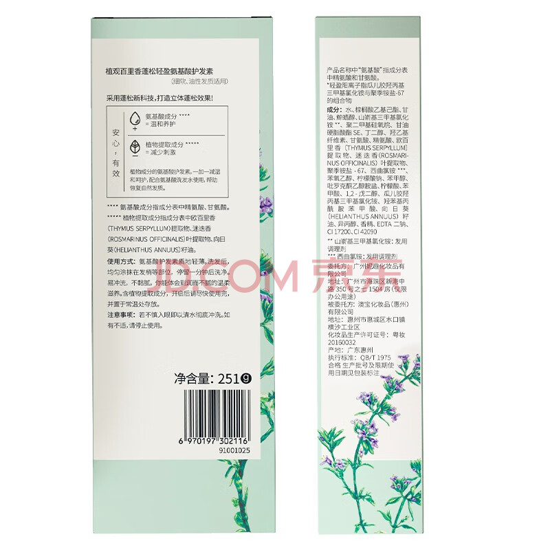 商品相册:植观蓬松护发素251g氨基酸护发素丰盈蓬松护发乳柔顺光亮温和不刺激第