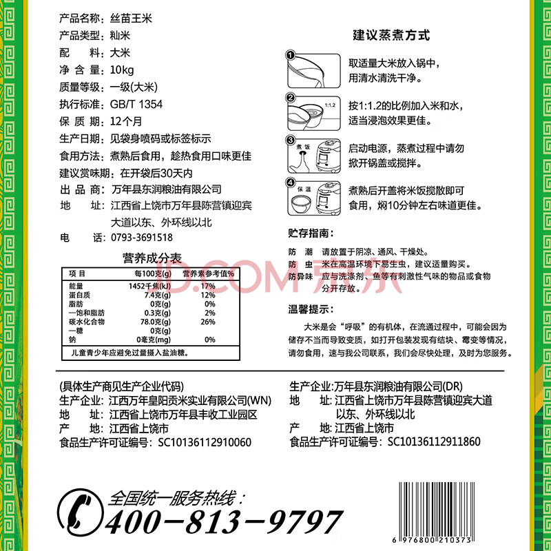 商品相册:万年贡 丝苗王大米江西优选丝苗米 鄱阳湖产区 大包装 家庭装大米20斤第