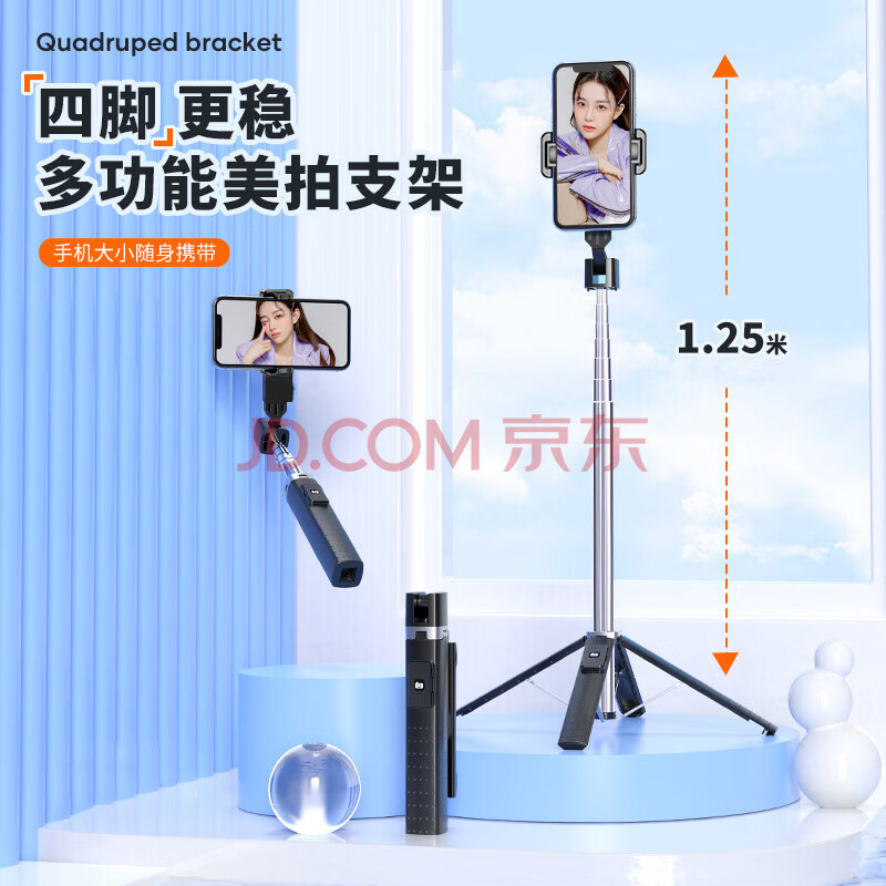 商品相册:Bkayp自拍杆三脚架手机直播支架拍照神器蓝牙遥控桌面手持便携加长旋转vlog抖音户外防抖拍短视频设备第