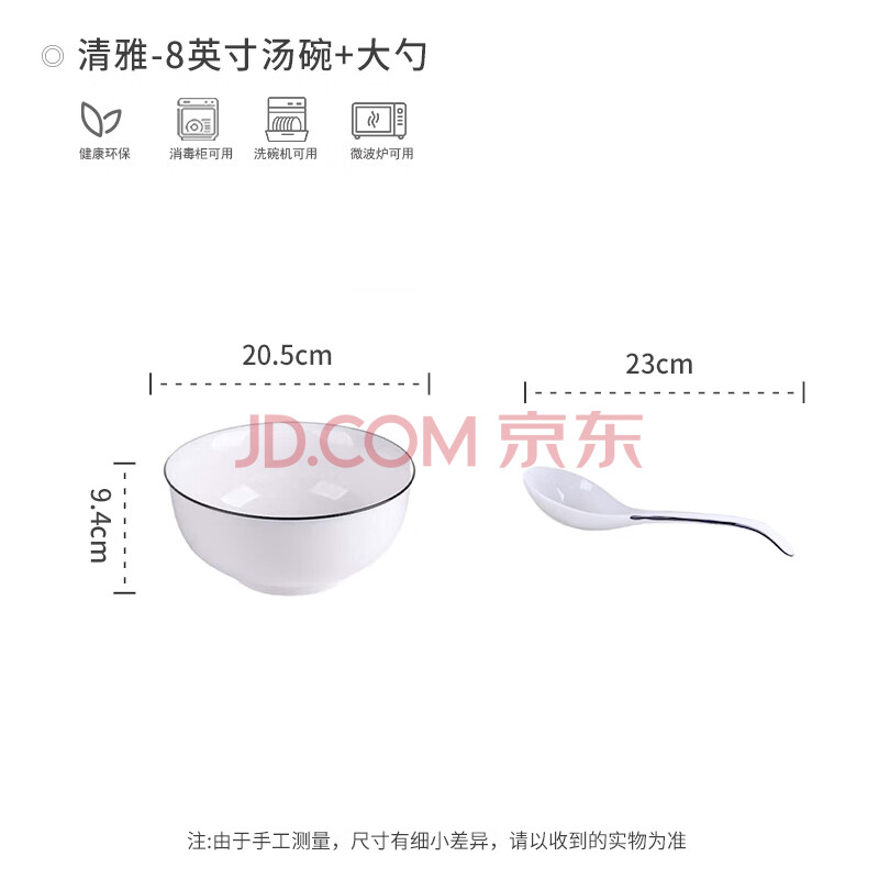 商品相册:浩雅釉下彩景德镇餐具8英寸大汤碗大汤勺家用汤盆汤碗套装面碗清雅第
