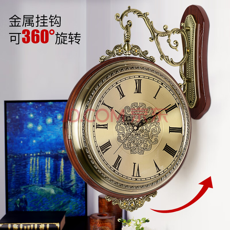 商品相册:汉时(Hense)客厅双面挂钟欧式挂表时尚现代两面时钟石英钟表HDS22棕色45cm第
