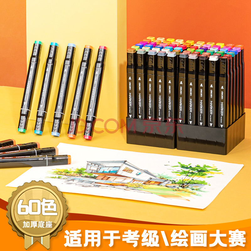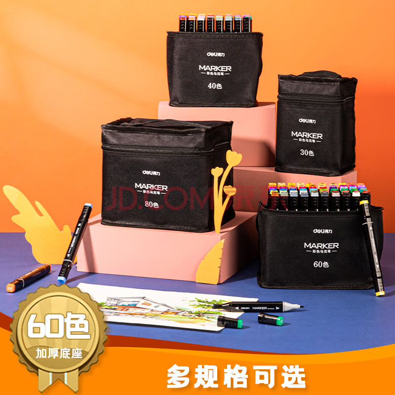 商品相册:得力(deli)60色粗细双头速干酒精马克笔黑布袋装学生水彩笔美术彩笔绘画手绘元旦树涂鸦生日礼物美育第