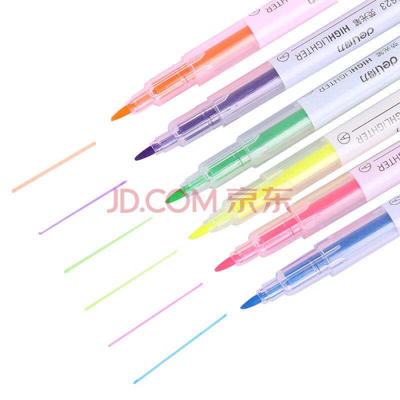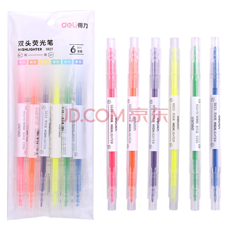商品相册:【开学必备】得力(deli)6色双头荧光笔醒目标记笔 手帐可用水性记号笔6支/袋 24袋装 S627第