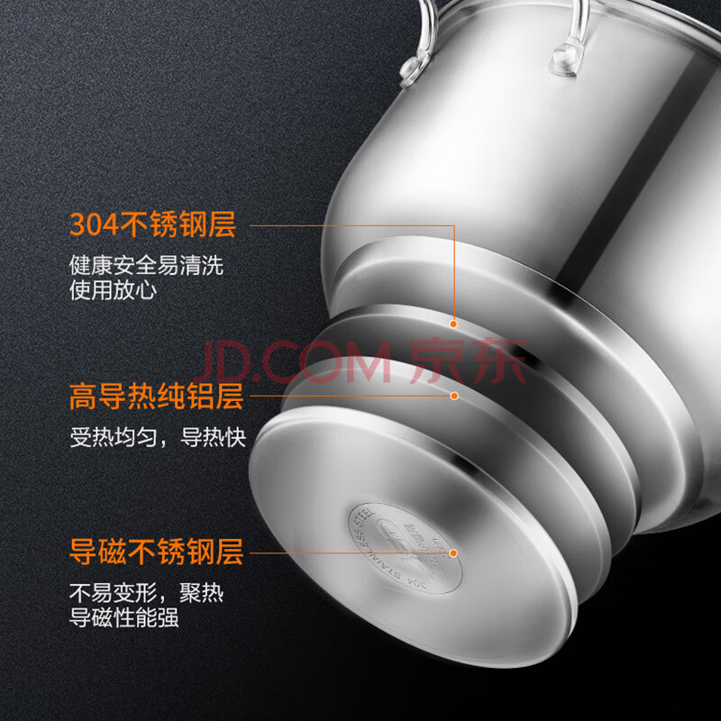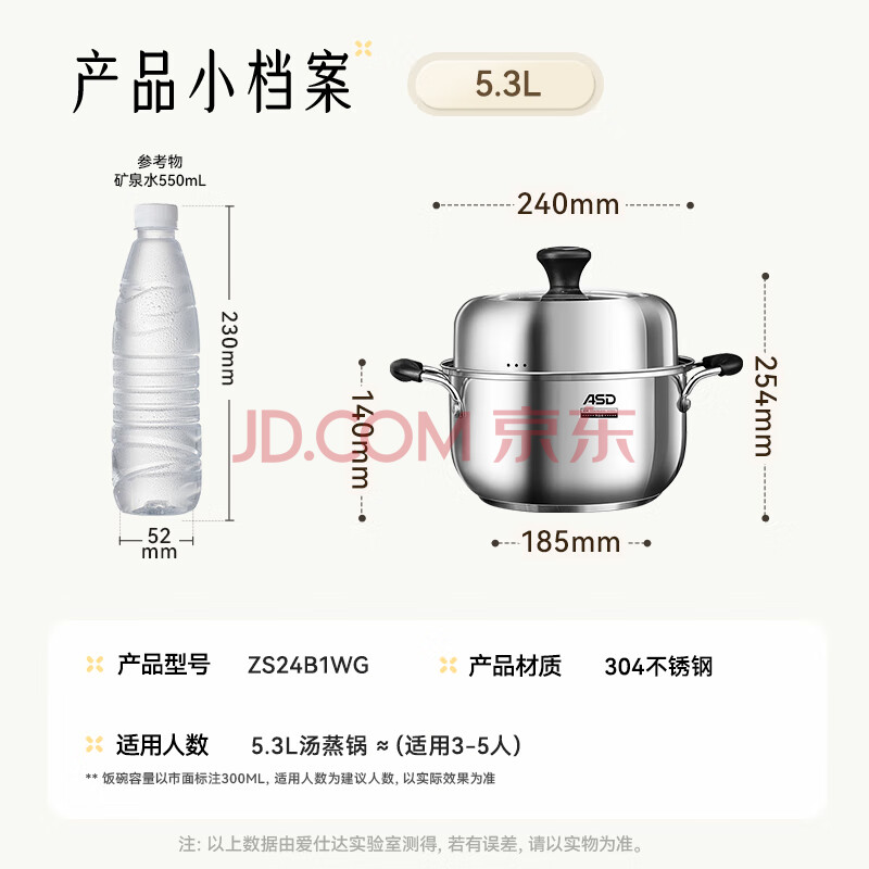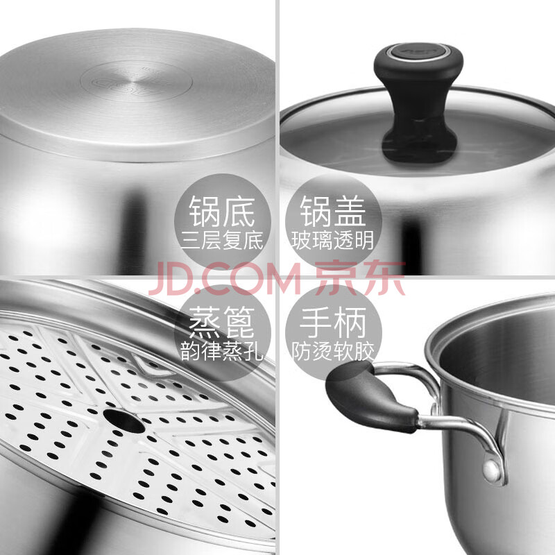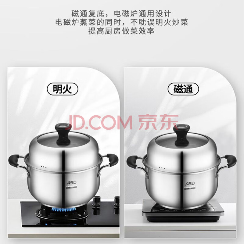 商品相册:爱仕达(ASD)汤锅304不锈钢单层蒸锅 蒸煮一体炖汤锅24CM电磁炉燃气灶通用ZSB1第