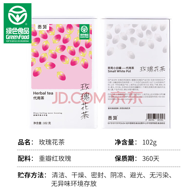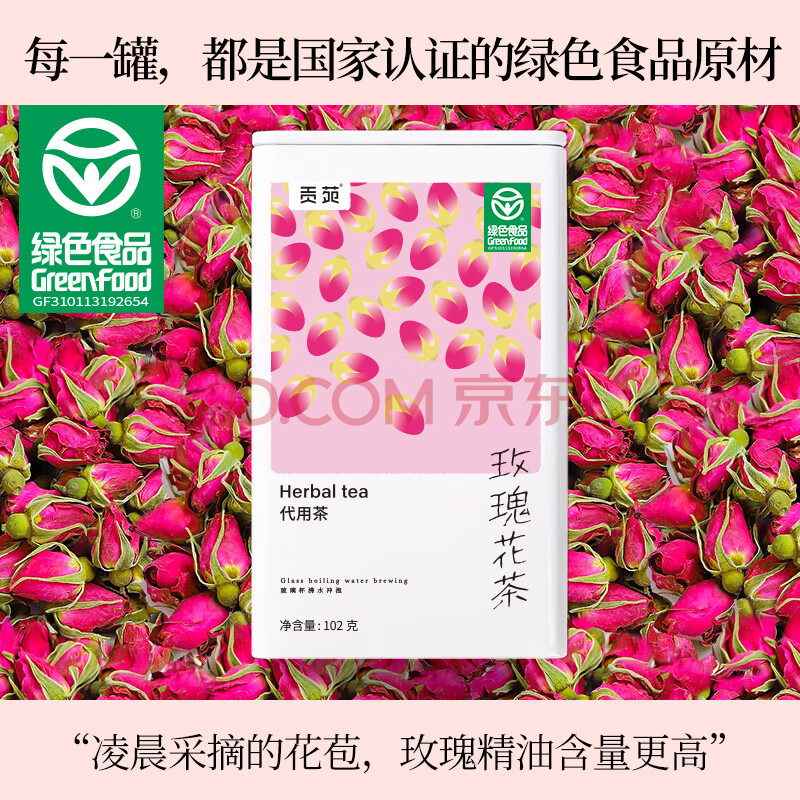 商品相册:贡苑花草茶【绿色食品】玫瑰花茶102g特级无硫磺胎玫瑰平阴送女友礼物第
