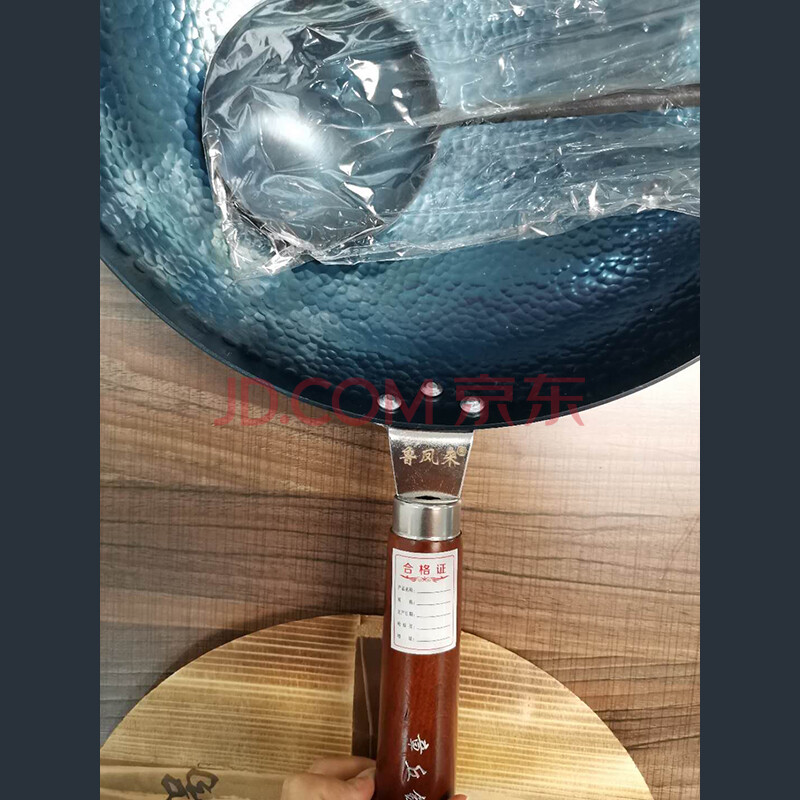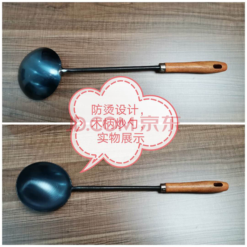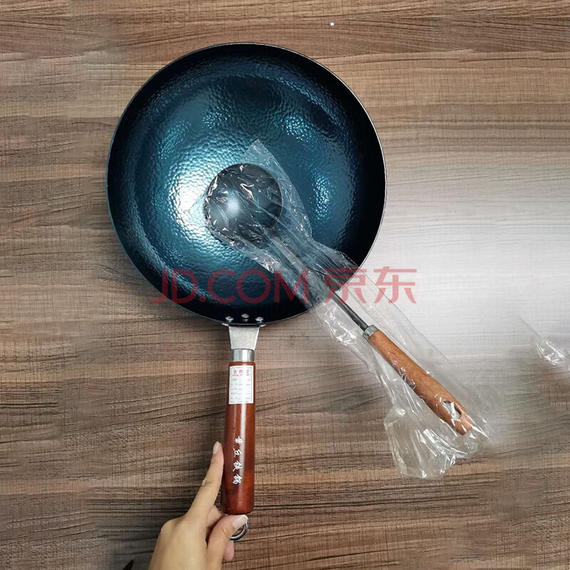 商品相册:鲁凤来 .章丘纯手工铁锅32CM勺子木盖三件套老式家用炒菜带盖FLTG-1207第