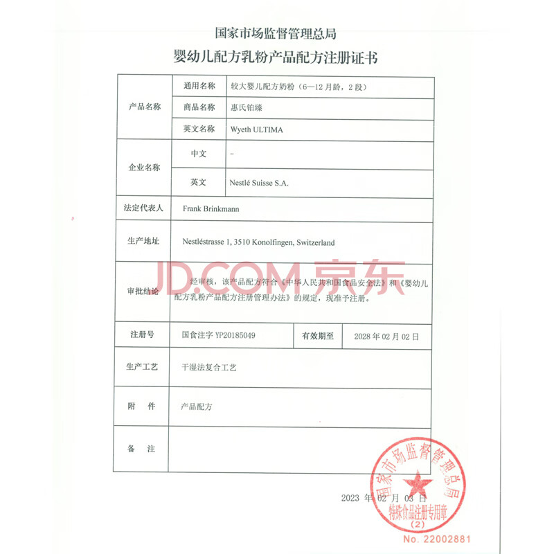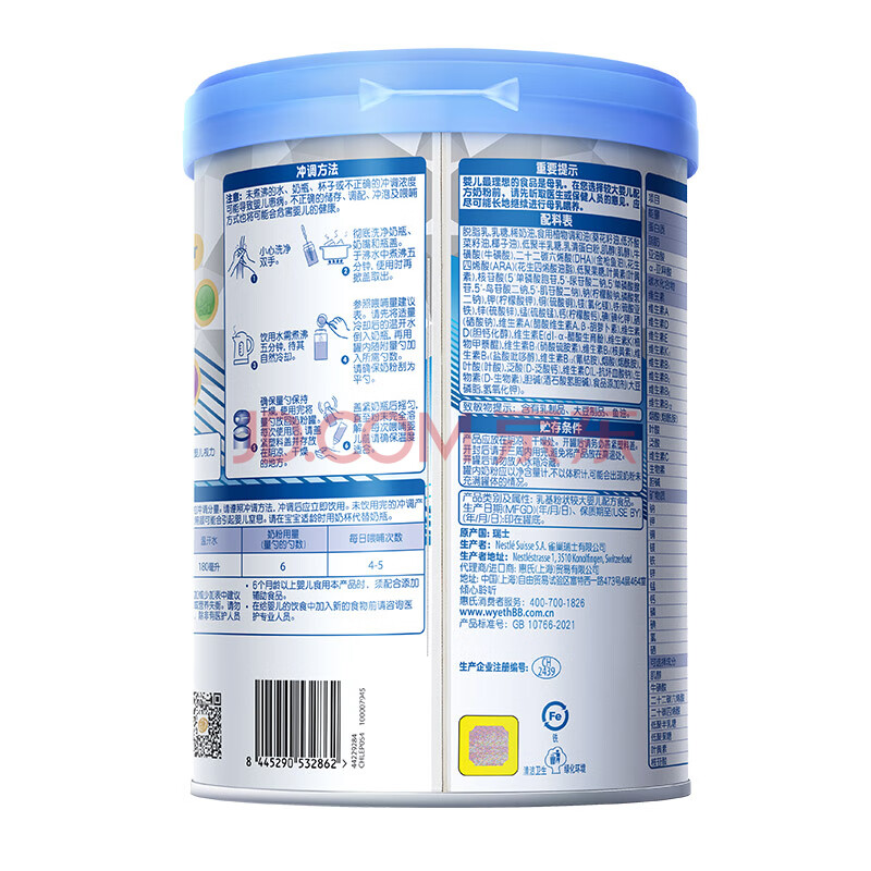 商品相册:惠氏(Wyeth)铂臻较大婴儿配方奶粉2段(6-12月)780g*6罐 进口DHA 脑磷脂群第