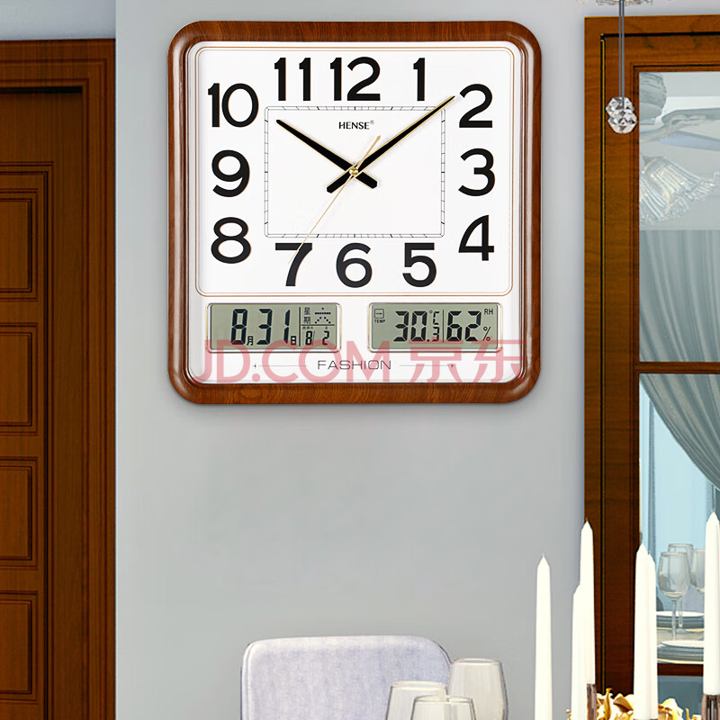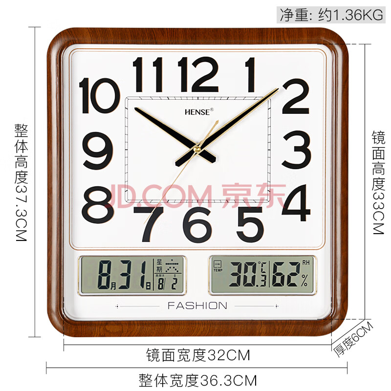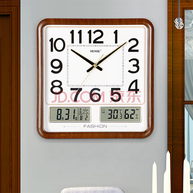 商品相册:汉时(Hense)挂钟客厅挂墙时钟温湿度万年历挂表家用石英钟表HW26常规版37.3cm第